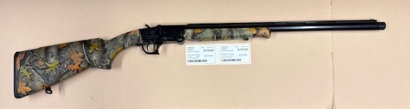 12 Gauge, Break Action, Camo Stock and Forearm, 23″ Barrel, Extra Full Extended Choke, Front Blade Sight, 1 Shot Capacity.