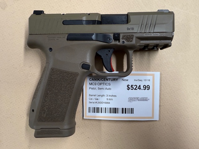 9MM, Semi-Auto, Striker Fired, FDE Polymer Long Frame and Optic Ready FDE Steel Slide, 3″ Barrel, Fixed Sights, Comes with 2 10 Round Magazines, Holster, OEM Case and Manuals.