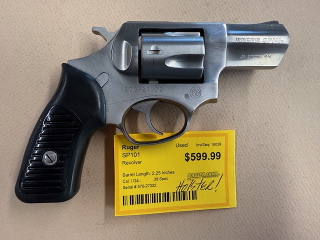 .38 SPL., Revolver, Stainless Steel Frame & Cylinder, 2.25″ Barrel, Rear Integral Sight and Front Blade Sight, 5 Shot Capacity, Comes with Leather Holster.